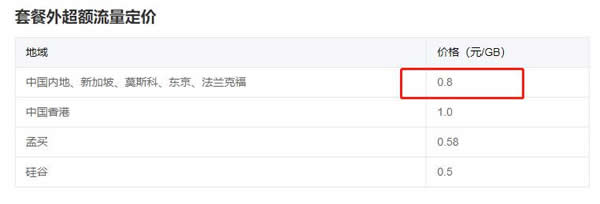 超出月流量包限额的部分将按照 套餐外超额流量定价 每小时结算费用。