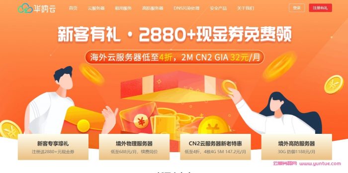 华纳云回馈新老客户推出了一系列产品的特惠活动:用户注册为华纳云会员,即可免费领取2880+现金券。新老用户更能同享多款4折的CN2 GIA 免备案云服务器、物理服务器、高防服务器、高防IP、DNS污染等产品。香港云服务器2核2G2M,3年付低至平均67元/月,美国云服务器2核2G2M,3年付低至平均55元/月,30G美国高防服务器终身价588元/月。华纳云提供的香港服务器专享10M CN2 GIA,三网直连骨干网;美国大带宽服务器,50M CN2 GIA优化回国/100M国际大带宽可选,全球用户可快速访问,99.98%网络在线率保障。