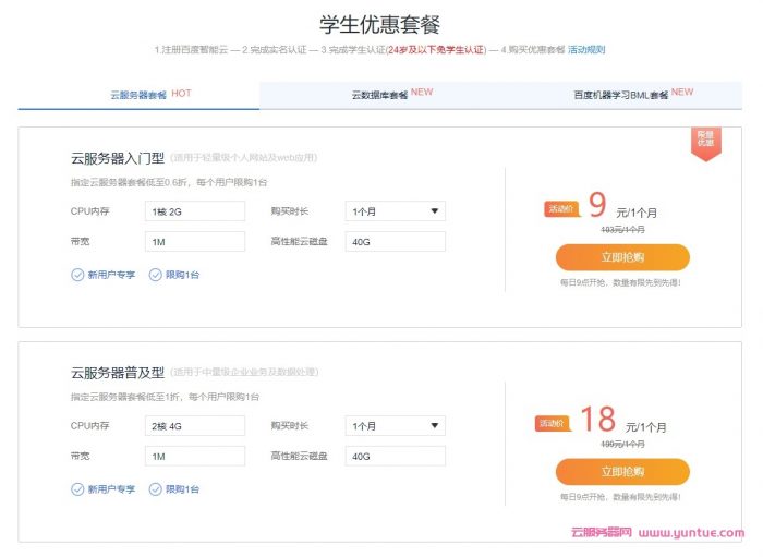 此外,完成学生认证的新用户还能以 18 元 / 1 个月的价格抢购 1M 带宽 2 核 4G 云服务器,同样拥有拥有 40G 高性能云磁盘,适用于中量级数据处理。