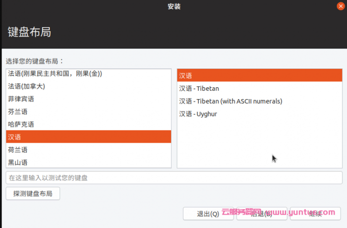 2.选择默认键盘布局,点击「继续」按钮进行安装。