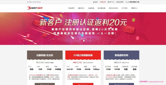 hostxen是一家提供可DIY配置的云服务器主机平台,VPS主机基于XEN架构,可选中国香港、美国、日本、新加坡区多个数据中心,主机支持内存、CPU、宽带和硬盘自由DIY,所有套餐默认包含35G硬盘,限制带宽不限流量,基础配置从2GB内存月付50元起。目前,HostXen稳景云主机新用户注册和认证后可获赠20元代金券,不限使用时间,可用于产品新购或者后期续费。
