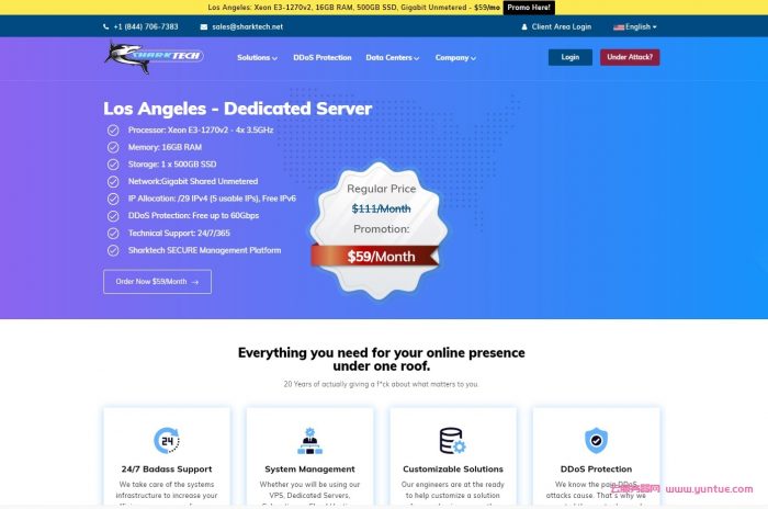 Sharktech:美国高防服务器,E3/16G/2TB/1Gbps,仅$99/月;E5/64G/2TB/10Gbps,仅$169/月
