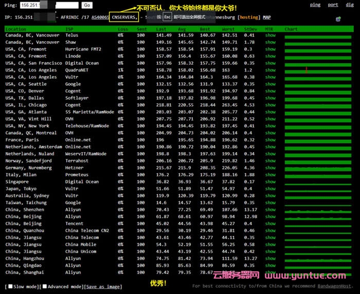 产品测试报告:(所有网路路由直连香港)