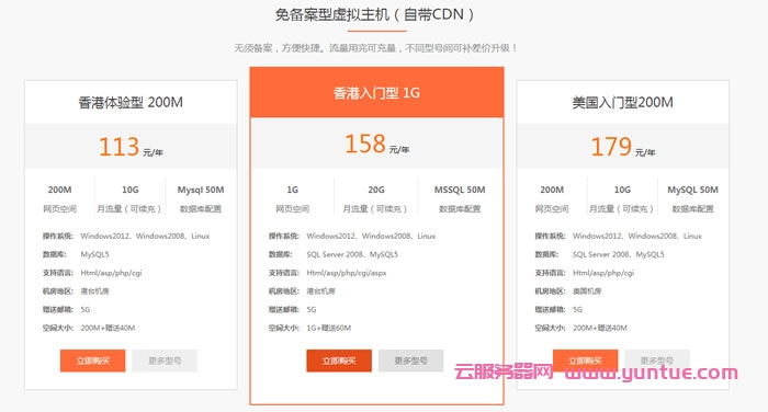 二、香港云互联免备虚拟主机部分产品:
