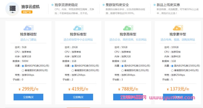 独享豪华型云虚机独享25M大带宽,100G独享空间1373/年直达