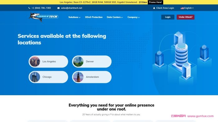 sharktech(又称SK机房、鲨鱼机房)是一家成立于2003年的美国IDC商家,Sharktech鲨鱼主机主要销售VPS和独立服务器,数据中心有美国洛杉矶、阿姆斯特丹、丹佛 、芝加哥和荷兰等,机房有多个层次的DDoS防护,最低可以处理10Gbps攻击,最高可以处理50Gbps攻击。Sharktech支持支付宝、PayPal、信用卡等国内外付款方式。