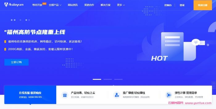 亚云由企业运营,拥有ICP/ISP/IDC/CDN等资质,亚云团队成立于2018年,经过多次品牌升级。主要销售主VPS服务器,提供云服务器和物理服务器,机房有福州、美国CERA、中国香港CERA和CTG,香港提供CN2 GIA线路和三网直连,美国CERA提供CN2 GIA和三网强制AS9929线路,有需要的朋友可以入手试试。亚云自开业以来一直有着良好的产品稳定性及服务态度,支持三天内无理由退款,以及随时可折算退款,业界口碑良好。