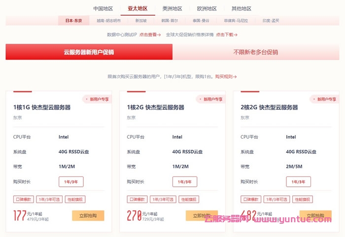日本东京 1核1G1M云服务器仅177元/年,479元/3年;新加坡2核2G2M云服务器仅478元/年,1290元/3年;韩国首尔2核2G2M仅482元/年,1303元/3年;美国洛杉矶2核2G2M仅386元/年,1042元/3年;英国伦敦2核2G2M仅482元/年,1303元/3年起。