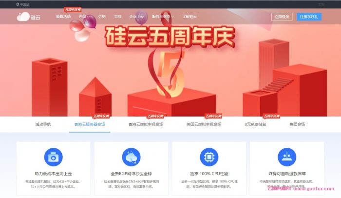硅云五周年庆活动时间: 本活动为不固定时间优惠活动,长期有效。