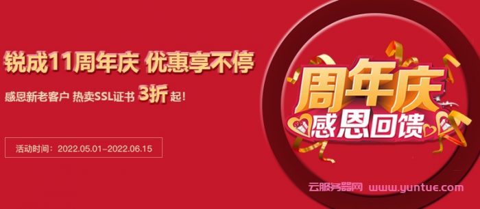 上海锐成信息科技有限公司成立于2011年,是一家老牌数字证书服务提供商,与多家国际和国内知名CA机构深度合作,拥有丰富的ssl证书类型,平日里价格也是非常亲民。在11周年庆期间,锐成为感恩回馈新老客户,特别推出了SSL证书特惠专场活动:此次周年庆为大家带来了多重福利,各类优惠劵领到手软,国际国产品牌SSL证书任你选择,低至3折惊爆价!