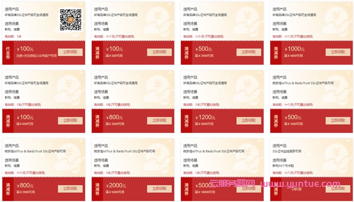1. 全场SSL证书通用优惠券,一键领取!点击领取 >>