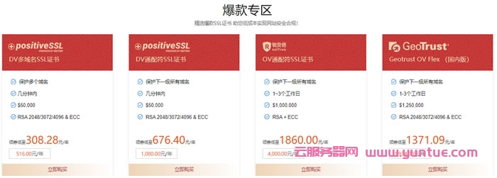 3. 爆款SSL证书专区,劲爆价308元起/年!点击直达>>