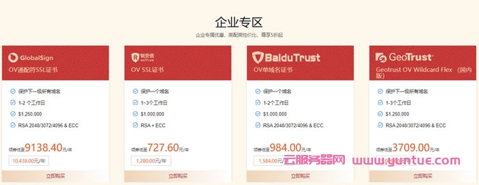4. 企业专属优惠,高配SSL证书尊享5折起 点击直达 >>