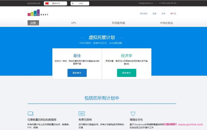 JustHost:官网新增简体中文版本,便宜俄罗斯VPS月付8.79元起