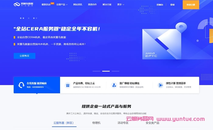 “双翼鸟”旗下产品有“双翼鸟数据”、“95盾”等产品成立于2008年,是国内领先的互联网业务平台服务提供商。公司专注为用户提供低价海外、国内、高性能、高防御云计算以及物理机产品产品。以及致力于云计算应用的易用性开发,并引导云计算在国内普及。目前,公司研发以及运营:高防CDN、高防云服务器、裸金属服务器、企业级数据安全型服务器、游戏搭建服务器、个人建站高防服务器等服务,面向全球客户提供基于云计算的IT解决方案与客户服务,拥有丰富的国内BGP、双线高防、香港以及海外各地区的优质的IDC资源。本公司产品均为代理产品!