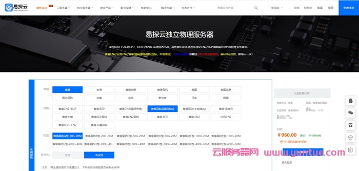 易探云香港高防服务器20G防御怎么样?易探云香港云服务器和物理机性价比都很高,此前介绍过“易探云:618大促,香港BGP服务器低至340元/月起,香港CN2+BGP服务器仅420元/月起”,非常便宜,质量也很不错!目前,易探云推出香港高防服务器20G防御(国际清洗),e3-1230v2/8G内存/240 SSD/20M带宽/3个ip,860元/月起,同时也提供本港防御型香港高防服务器,当服务器受到攻击时,在香港本地清洗,路由不变,延时正常。