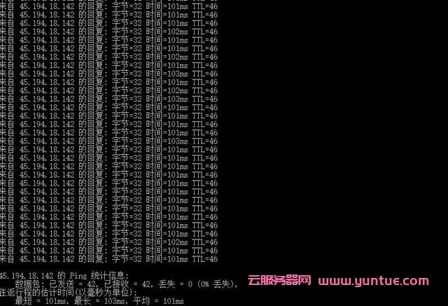 Ping延迟在101ms左右,网络是相当稳定的,没有丢包的情况。