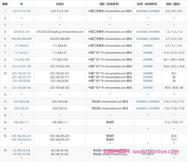 移动去程路由则似乎更好一些,直接从内地直连新加坡机房。这种线路确实是非常难得的。
