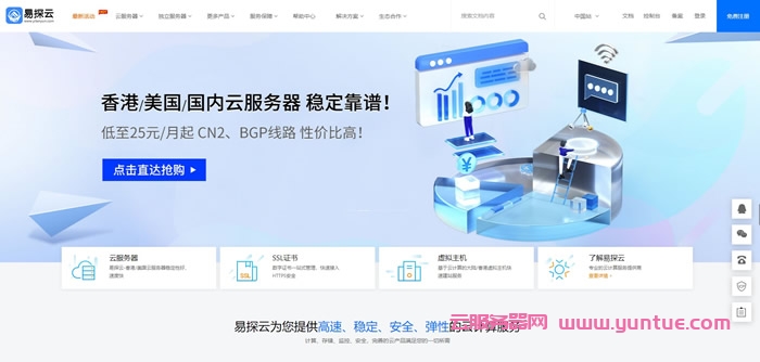 易探云怎么样?易探云是一家提供云服务器、云虚拟主机、域名、物理机等服务的云计算商家,易探云在全球运营20+数据中心,跨生态的链接,为各类业务构建灵活IT架构。目前,易探云香港CN2沙田云服务器,1核/1G内存/2M带宽,仅19元/首月起;香港大宽带vps,2核2G/8M带宽/20G数据盘,仅66元/月起,更有香港高防云服务器,4核/8G/5M带宽/50G防御,仅560元/月起,今天主要介绍的是易探云香港高防云服务器,一起来了解一下吧!