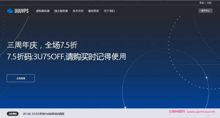 uuuvps三优云怎么样?uuuvps三优云现在已经稳定运行3周年了,商家为此在搞低价清仓活动,美国西海岸圣何塞cn2 vps低至99元/年,中国香港CN2 VPS低至89元/年。UUUVPS三优云香港T3机房,三优网络自有机柜,CN2+BGP线路,去程电信cn2,联通移动直连,回程BGP。美国圣何塞去程电信CN2,回程BGP,大部分城市走CN2。