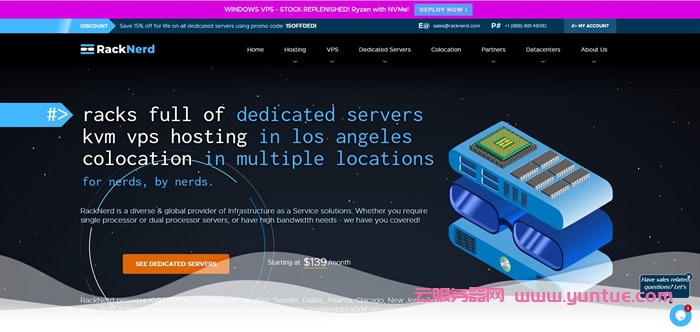 racknerd发布了7月份的促销,本次促销有三款套餐,最低配年付$14.88,此外还有年付$25.88和年付$35.88款,续费同价,感兴趣的小伙伴可以围观。RackNerd是一家成立于2019年的国外主机商,RackNerd主要经营美国圣何塞、洛杉矶、达拉斯、芝加哥、亚特兰大、新泽西等机房基于KVM虚拟化的VPS、混合独立服务器VDS、独立服务器、站群服务器,还有犹他州盐湖城机房大硬盘存储型服务器业务。采用主流的SolusVM控制面板,支持PayPal、支付宝、信用卡、加密货币、webmoney等付款。