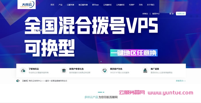 最后:大兵云不仅提供香港、美国云服务器,还提供全国各地拨号vps及华南BGP、美国cera、日本、台湾等vps主机,还提供云电脑(挂机宝)等服务,有需要的可以进大兵云官方网站了解一下!