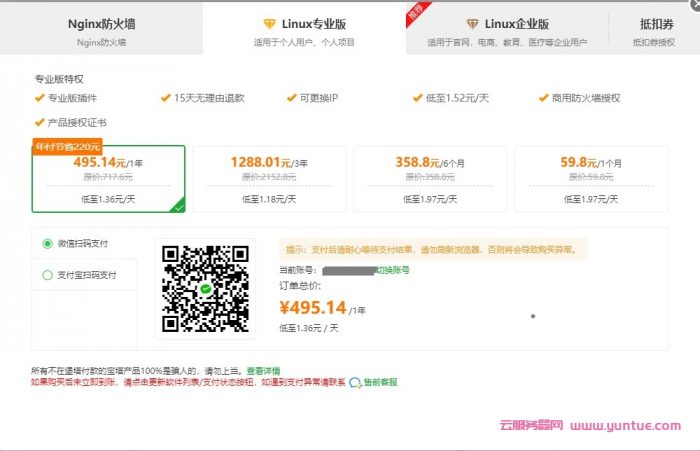 宝塔面板Linux专业版可以支持月付、半年付、年付、3年付,或永久授权(需要特定活动可以),具体可以参考如下: