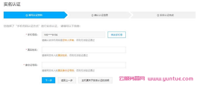 3、点击实名认证页面的手机号码验证实名的选项,开始进行实名认证。需填写与手机号机主对应的真实姓名和身份证号。点击下一步,确认信息并提交审核。(PS:现在要求必须进行实名认证,因为是第三方实名认证,完成实名认证需要充值1元作为实名认证费。)