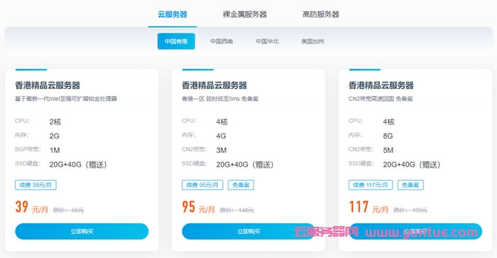 快速云云服务器基于最新一代Intel®至强®可扩展铂金处理器,性能更优,续费不涨价,国内机房、中国香港机房、美国机房可选: