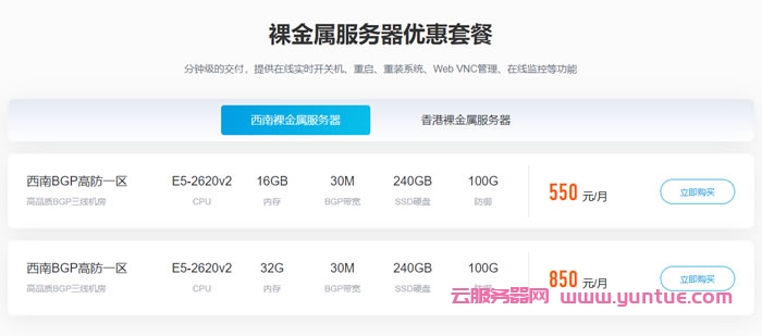 快速云新用户首购特惠包括3个促销产品:云服务器、裸金属服务器和高防服务器,机房含盖中国华中地区、中国香港和美国机房,针对新用户的折扣还不错,并且续费不涨价。