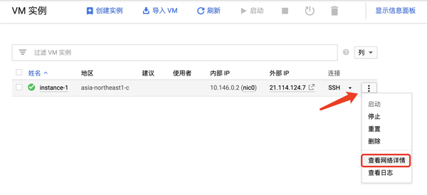 点击实例信息右侧的更多图标,选择“查看网络详情”。