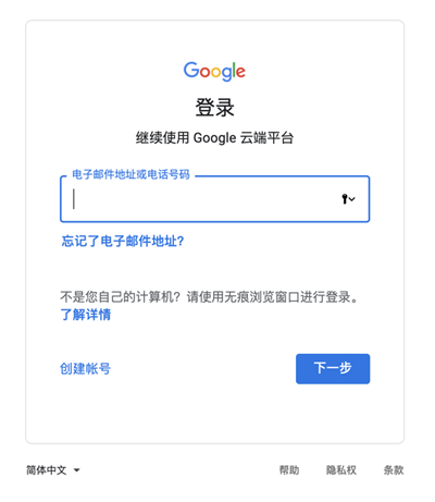 2、登录谷歌帐号