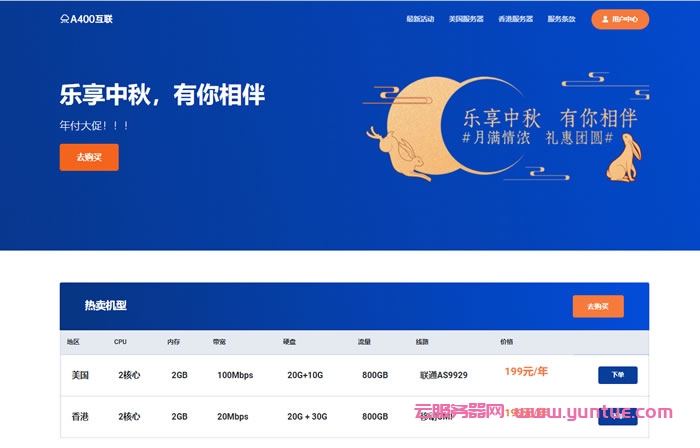 A400互联怎么样?A400互联最近上线了四期机器,同时推出乐享中秋活动,A400互联的美西,线路三网联通9929,建站更加稳定,CPU采用E5-2680v4性能更佳,如美国洛杉矶9929线路KVM VPS,199元/年/2核2GB内存/30GB SSD空间/1TB流量@100Mbps端口,支持支付宝付款,支持24H无条件退款。