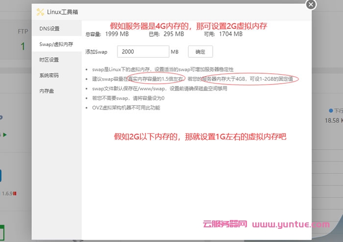 Linux工具箱。添加设置swap,添加设置SWAP大小,根据你的实际内存进行调整,swap是Linux下的虚拟内存,设置适当的swap可增加服务器稳定性,建议swap容量在真实内存容量的1.5倍左右,若您的服务器内存大于4GB,可设1-2GB的固定值,swap文件默认保存在/www/swap,设置前请确保磁盘空间够用。
