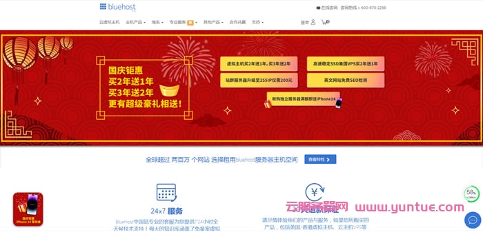 BlueHost,BlueHost虚拟主机有美国主机、香港主机、欧洲主机和印度主机,提供Plan A、Plan B和Plan C三种方案,采用电信CN2线路和SSD固态硬盘存储,无限空间和流量配置。Bluehost主机各类方案均采用的是当前最为稳定、安全、流行的cPanel(Linux)、Plesk(Windows)控制面板,而且面板可以设置成中文界面来操作,非常简单易用。现在使用BlueHost优惠码可以享受七折,低至19月/月,而且还赠送免费域名、SSL证书和网络云备份等等。