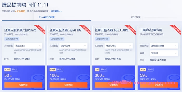 然后是 2022 双十一秒杀活动,秒杀一年轻量应用服务器只需要 50 元,还有 2核4G6M 的一年也只需要 100 元,买就对了。(点击直达)