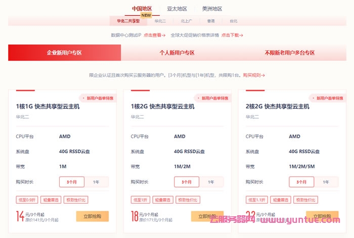 限企业认证且首次购买云服务器的用户。[3个月]机型与[1年]机型,共限购1台。