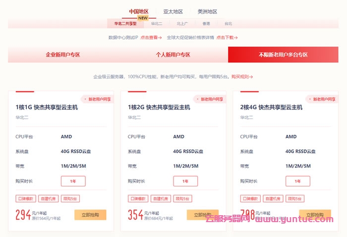 企业级云服务器,100%CPU性能,新老用户均可购买,每用户限购5台。