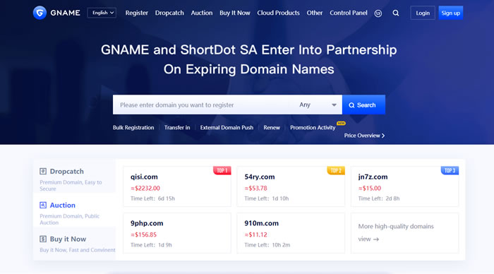 Gname是一家专业的国际域名注册商,成立于新加坡,致力于打造国际互联网域名综合服务平台。Gname以域名为业务核心,为客户提供域名注册、域名抢注、域名交易、域名管理、API接口等产品服务。