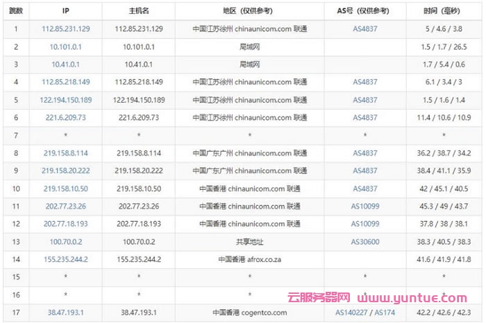 联通去程路由是从广州网口出去,直连香港机房,走的是AS4837联通优化线路。