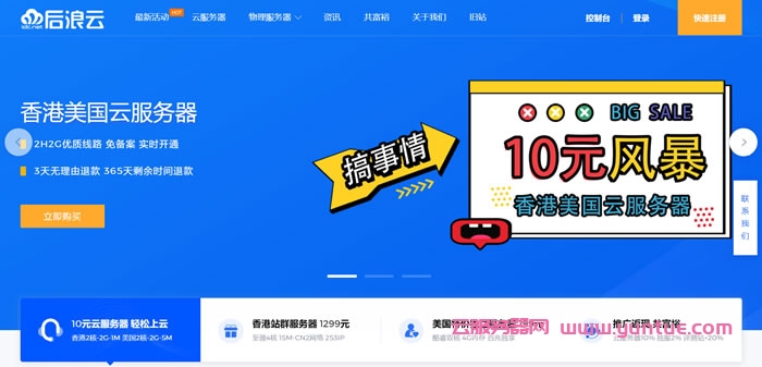 从2008年创业至今,后浪云(IDC.NET)始终坚持以用户需求为导向,提供安全、稳定、快速的产品和服务。近期,为了给大家提供更优质的用户体验,后浪云对系统进行了优化升级。管理功能更加完善,云服务器产品的性能也得到了加强!并且现在使用优惠码:IDC,购买2核2G的香港/美国云服务器,首月仅需10元!支持3天无理由退款和365天剩余时间退款。