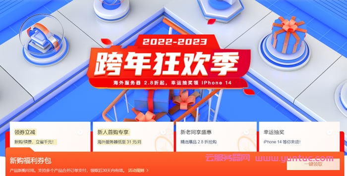 恒创科技【跨年狂欢季】活动正在进行,海外服务器、云、高防,全场2.8折起!新人首购专享福利券包,满150减50、满500减150、满1000减300、满3288减888更高可减1888元。更有IPhone14等各种好礼福利。