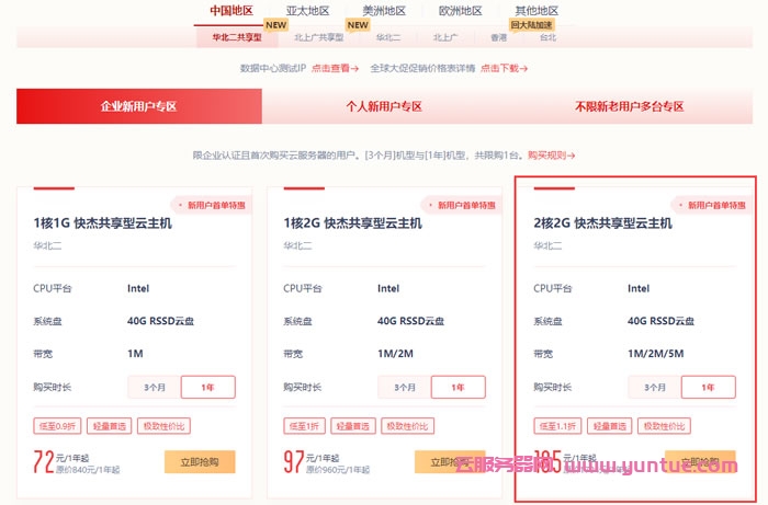 UCloud云服务器平时都有新用户促销,2核2G快杰共享云服务器(华北二共享型)低至158元/年起;不过建议大家买北上广共享型云服务器,2核2G快杰型云服务器仅242元/年起;如果大家对性能要求较高,可以选快杰O型云主机,2核2G仅377元/年(华北一、广州、上海二可选)!
