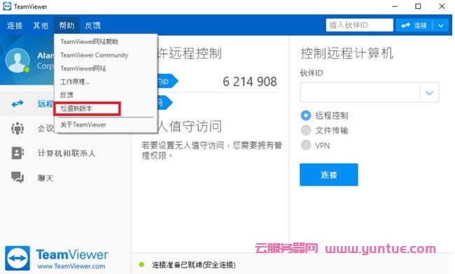 如果在TeamViewer设置中停用了此通知图标,只需点击 帮助 > 检查新版本,进行更新。