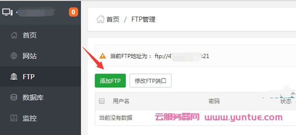 · 检查FTP服务是否启动 (宝塔面板首页即可看到);
