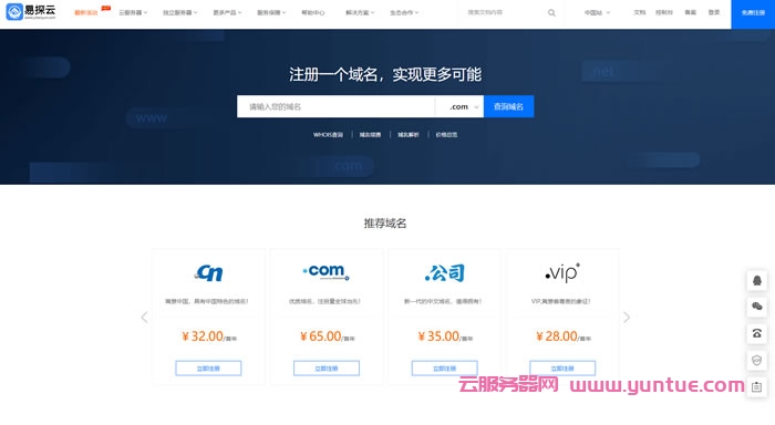 比如在易探云注册.cn域名,注册普通cn域名是32元/首年。