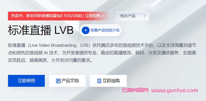 腾讯云直播流量包100G仅26元/年起,境外流量与快直播流量可按比例抵扣