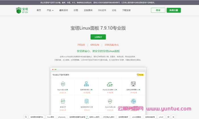 宝塔面板根据您使用的国内或国外服务器操作系统不同,包含宝塔Linux面板和宝塔Windows面板。其中宝塔Linux面板专业版699元/年,每天低至1.92元;宝塔Windows面板专业版768元/年,每天低至2.1元。