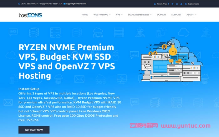 hosteons成立于2018年,支持微信、支付宝和银联卡,国内用户还是众多。hosteons目前有美国洛杉矶、纽约、拉斯维加斯、杰克逊维尔这四个机房。hosteons采用主流的SolusVM面板,KVM虚拟化,可选windows操作系统,所有机房提供100Gbps DDOS防御。