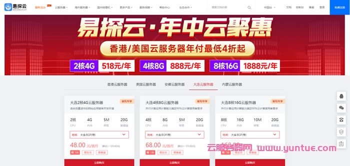 易探云怎么样?易探云年中聚惠活动正在进行,香港及美国2核4G云服务器低至58元/首月起,国内2核4G5M云服务器仅48元/首月起,年付优惠更多、长期使用更划算。香港/美国云服务器,4核8G仅888元/年起;国内云服务器2核4G5M仅390元/年,性价比不错,有需要的用户可以进入易探云(www.yitanyun.com)官网了解一下,中文界面,在线实时开通,后台便捷管理,支持支付宝、微信支付等!